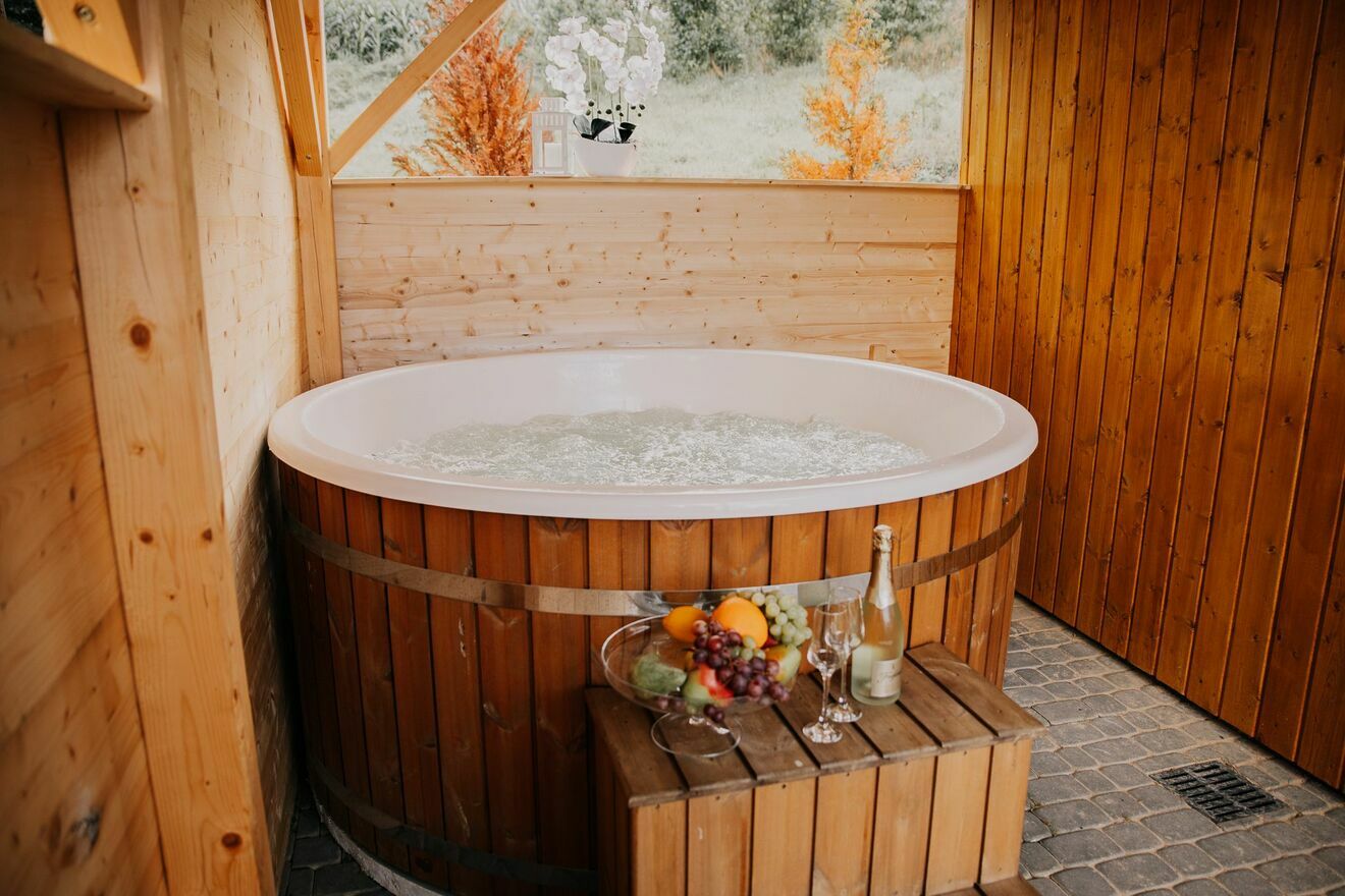 - balia z jacuzzi na wyłączność przez cały okres pobytu (własne opalanie)